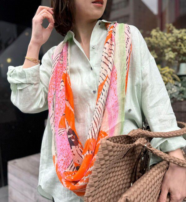 NOLLEY'S◆Point・アーティスティックな色彩が特徴のリネンスカーフ・色鮮やかなコントラストが、コーディネートに遊び心と華やかさをプラスします。・首元はも.. |