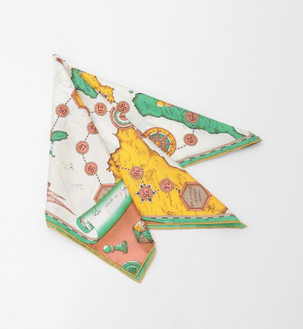 バスク地方シャンタコの幻想的な風景画をまとったランドスケーププリントスカーフ・エレガントなしなやかさを備えるレーヨン素材・ルネ・ラコステゆかりのバス.. |