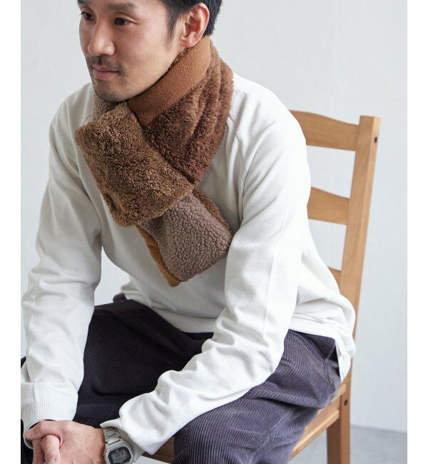 [アイテム説明]リバーシブルで使用可能なマフラー。差し込むだけで簡単に着用可能。2WAYで違った表情が楽しめる、素材の変化をつけています。片面はカールさ.. |