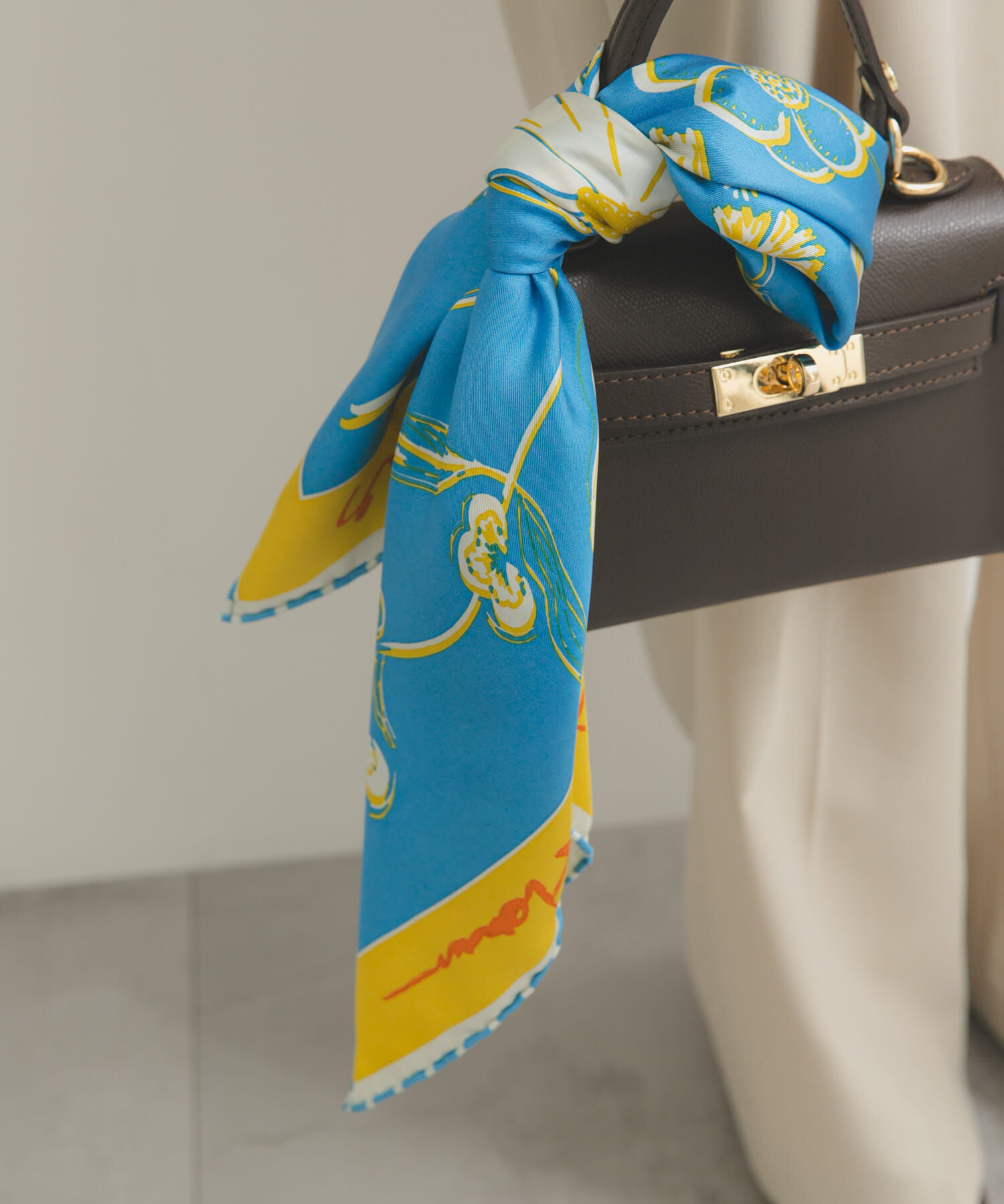 スタイリングを格上げしてくれるスカーフ【Material】ポリエステル素材【Design】上品なアソート柄が特徴のスカーフ。アレンジがしすいサイズ感でバッグに付け..
