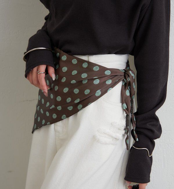 さりげない甘さをプラスするドットスカーフ ●デザイン ・ブラウンベースと淡色のドットで、可愛さがいりつつも大人っぽい印象に。 ・先端の細紐ディテールが.. |