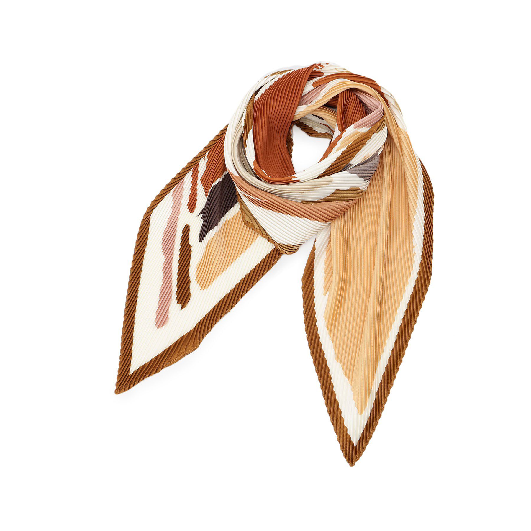 ミニプリーツの立体的なフォルムと印象的なフォルムとジオメトリック柄が印象的。コンパクトながら存在感があり、巻くだけでぐっと洗練された印象に仕上がりま.. |