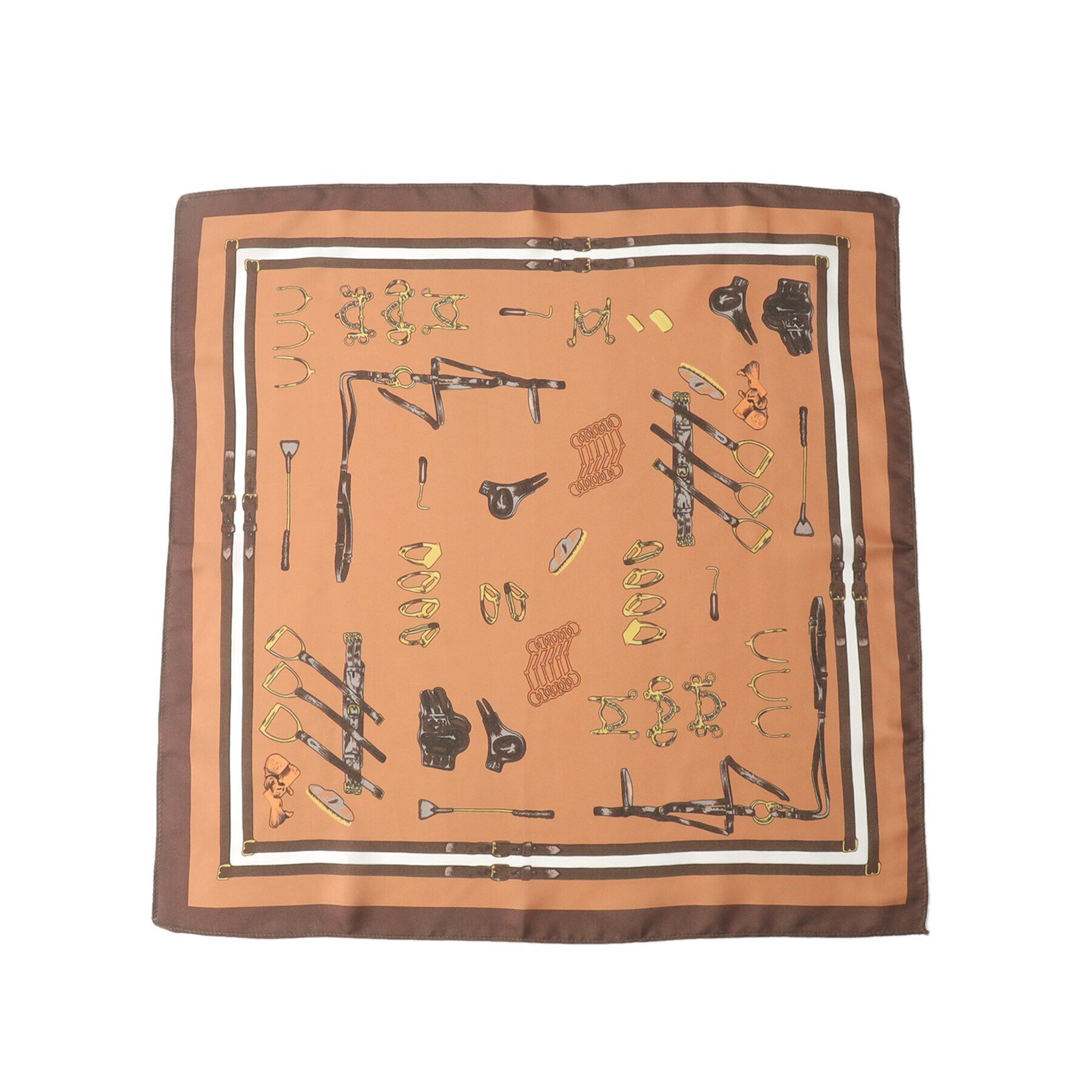 クラシカルなモチーフをプリントしたスクエアスカーフ。【デザイン】馬具モチーフやベルトなどクラシカルなモチーフをプリントしたスカーフ。スクエアなので、.. |