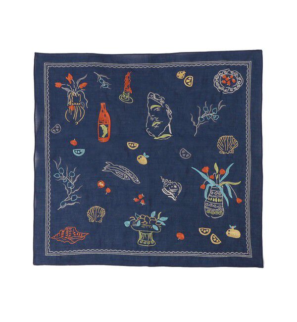 【シップス/SHIPS】 ANATHA:ポンポン 刺繍 バンダナ スカーフ