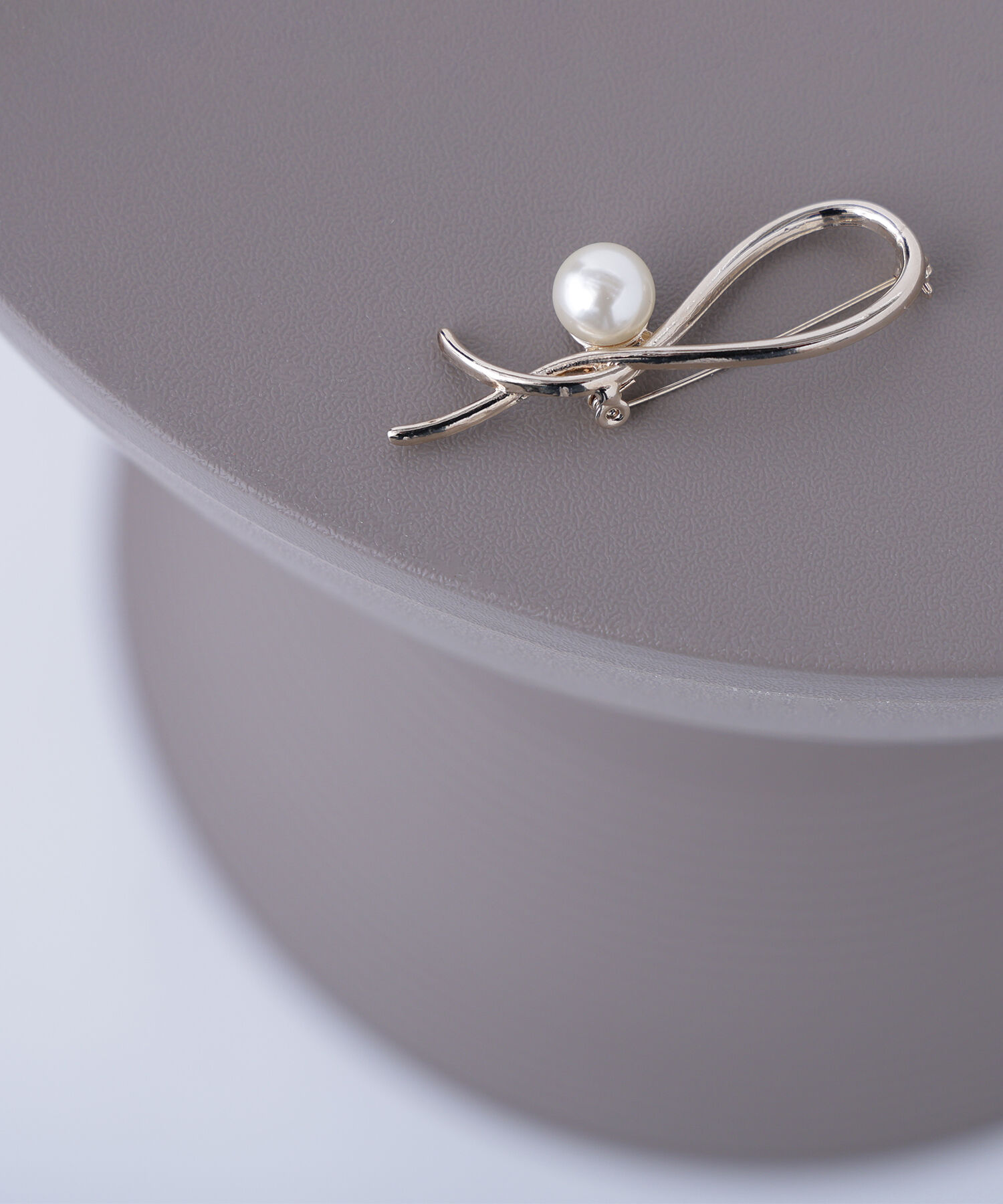 ツイストしたメタルラインに1粒のパール調が配された、ノーブルでエフォートレスなデザインのブローチ。セレモニーシーンやオフィスシーンに洗練された印象を.. |