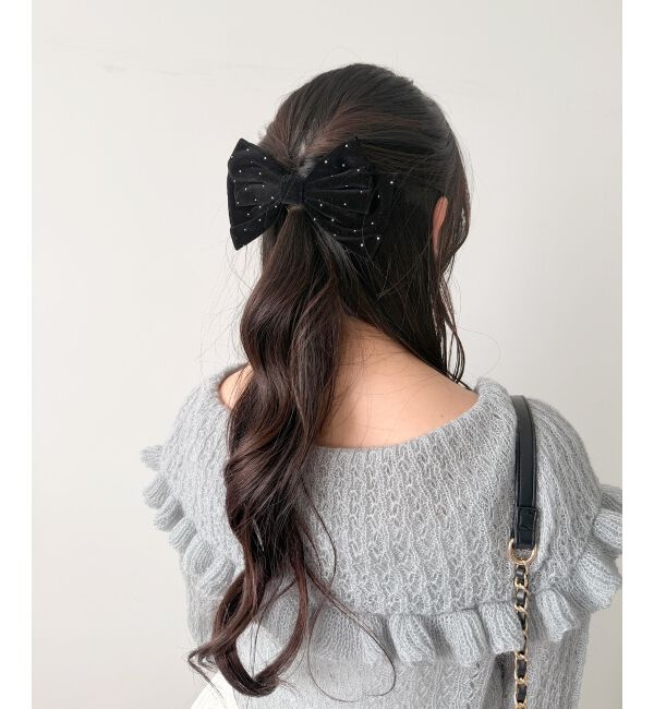 ベロア調の生地ときらめくビジューが華やかな、存在感たっぷりのリボンバレッタ。光を受けるたびに上品に輝き、ヘアスタイルをフェミニンに仕上げてくれます。.. |