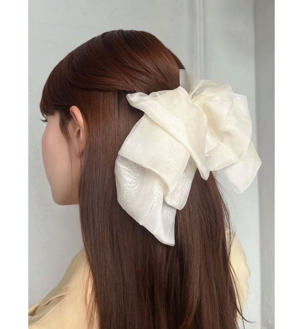 大きなリボンがアクセントになるバレッタ。シアーの透け感が華奢な女の子らしさを引き立て、さりげない可愛らしさをアピールしてくれます。たっぷり重なったシ.. |