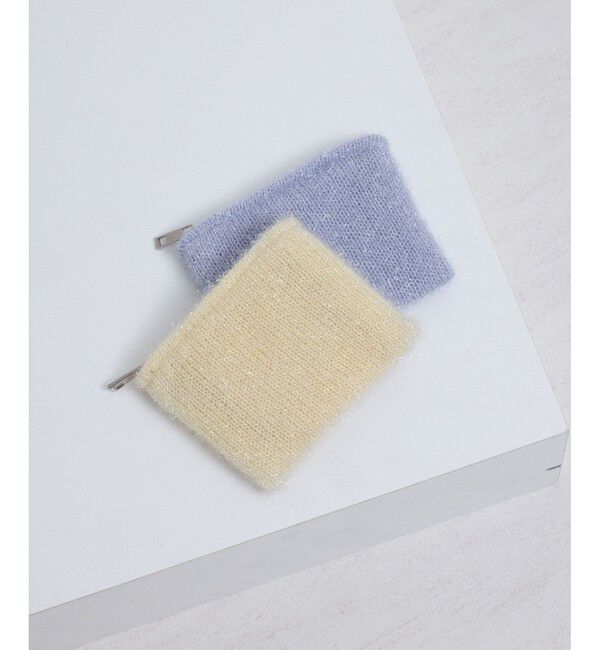 優しい色合いとニットの温もりに癒されるポーチ。【素材感】・ニット素材に伸びがあり、フラットでも容量たっぷり。【デザイン・シルエット】・ラメがほんのり.. |