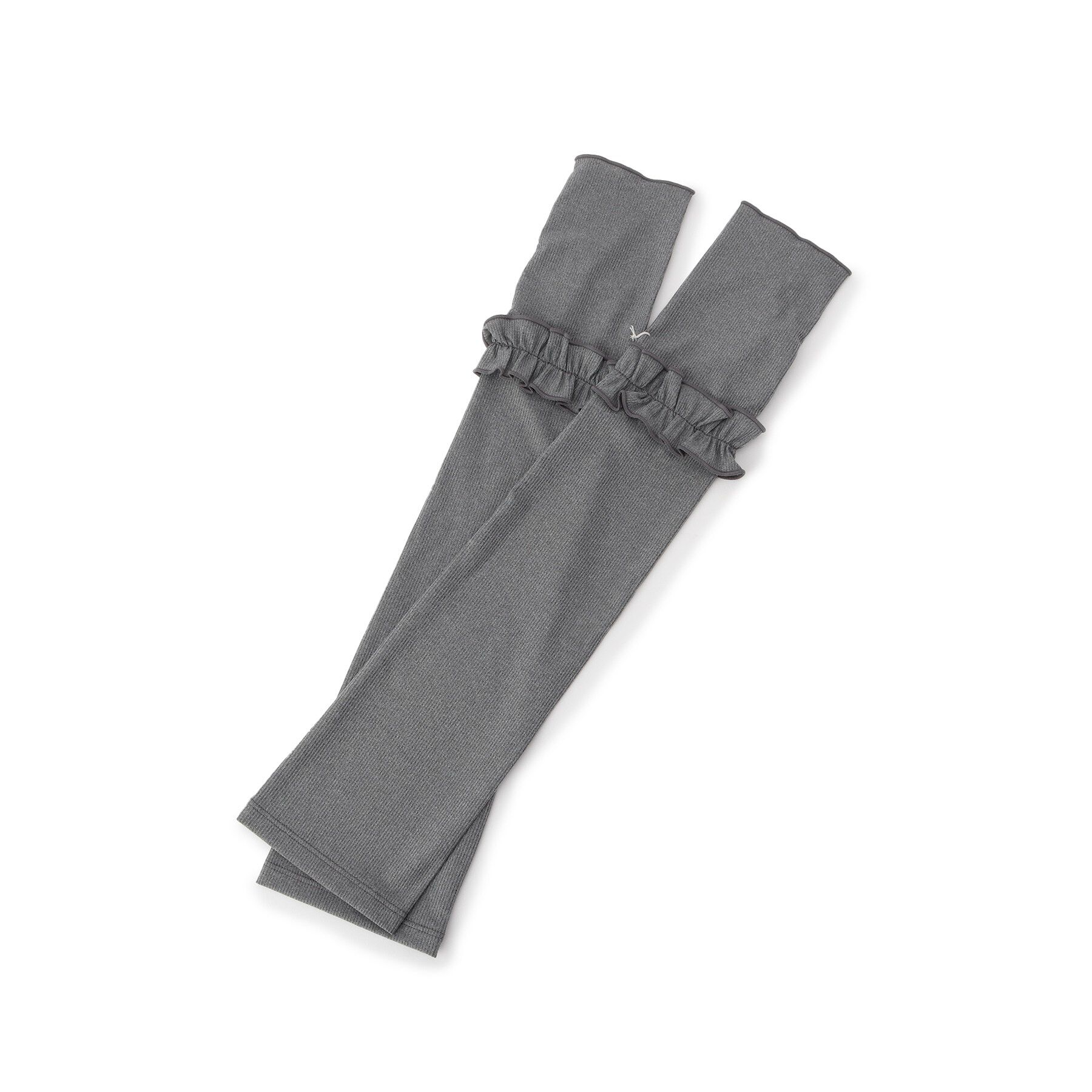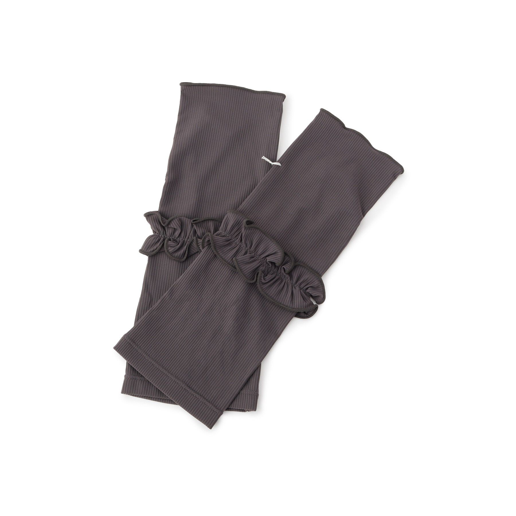 【デザイン】手元にフェミニンな抜け感を添えるショート丈のUVグローブ。手首部分に施したメロウフリルがさりげないアクセントに。シンプルなチャコールグレー.. |