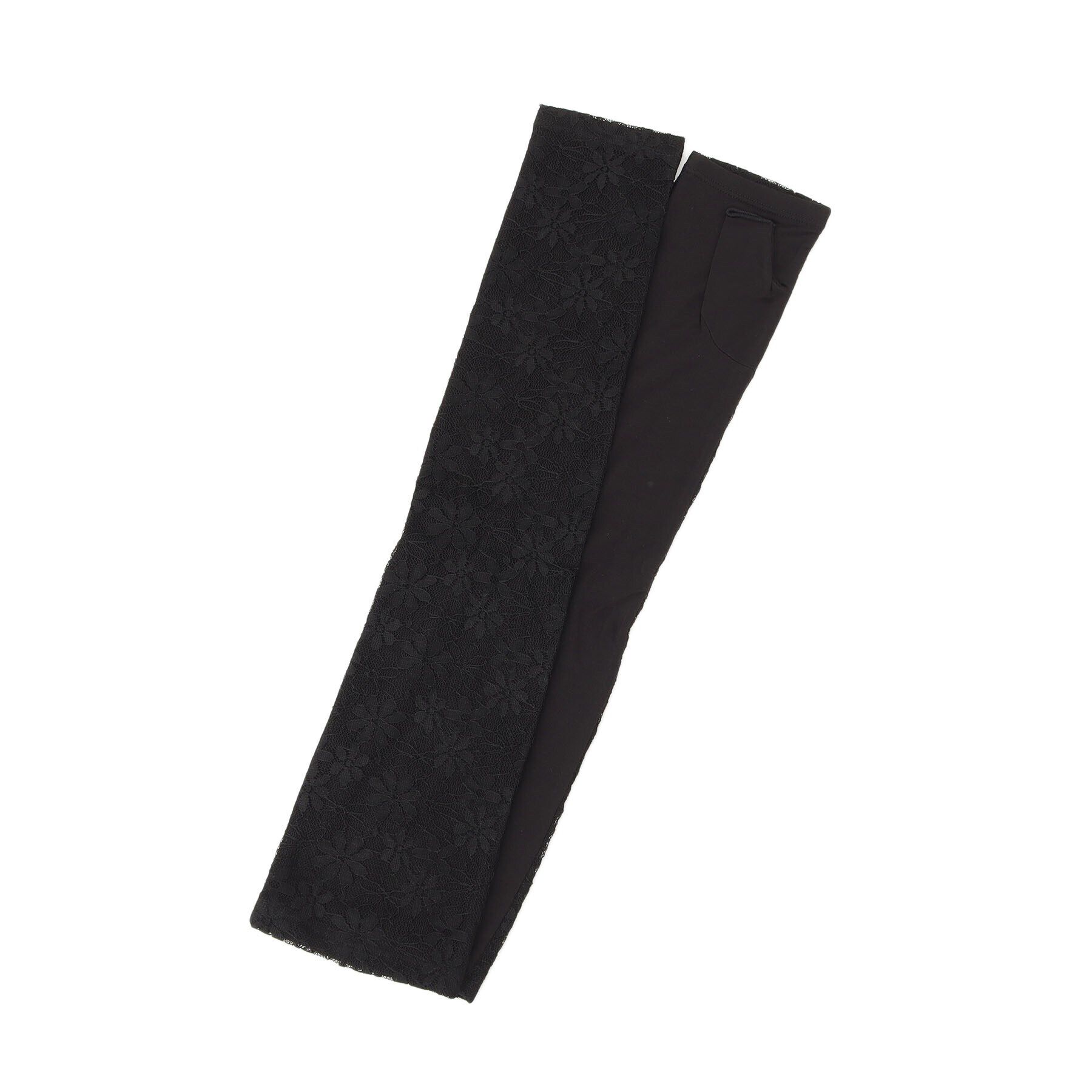 【デザイン】定番の総レースUVアームカバー。外側は花柄の総レースデザインで上品な印象に、内側には竹繊維を含んだレーヨン生地を使用しているので優しい付け.. |