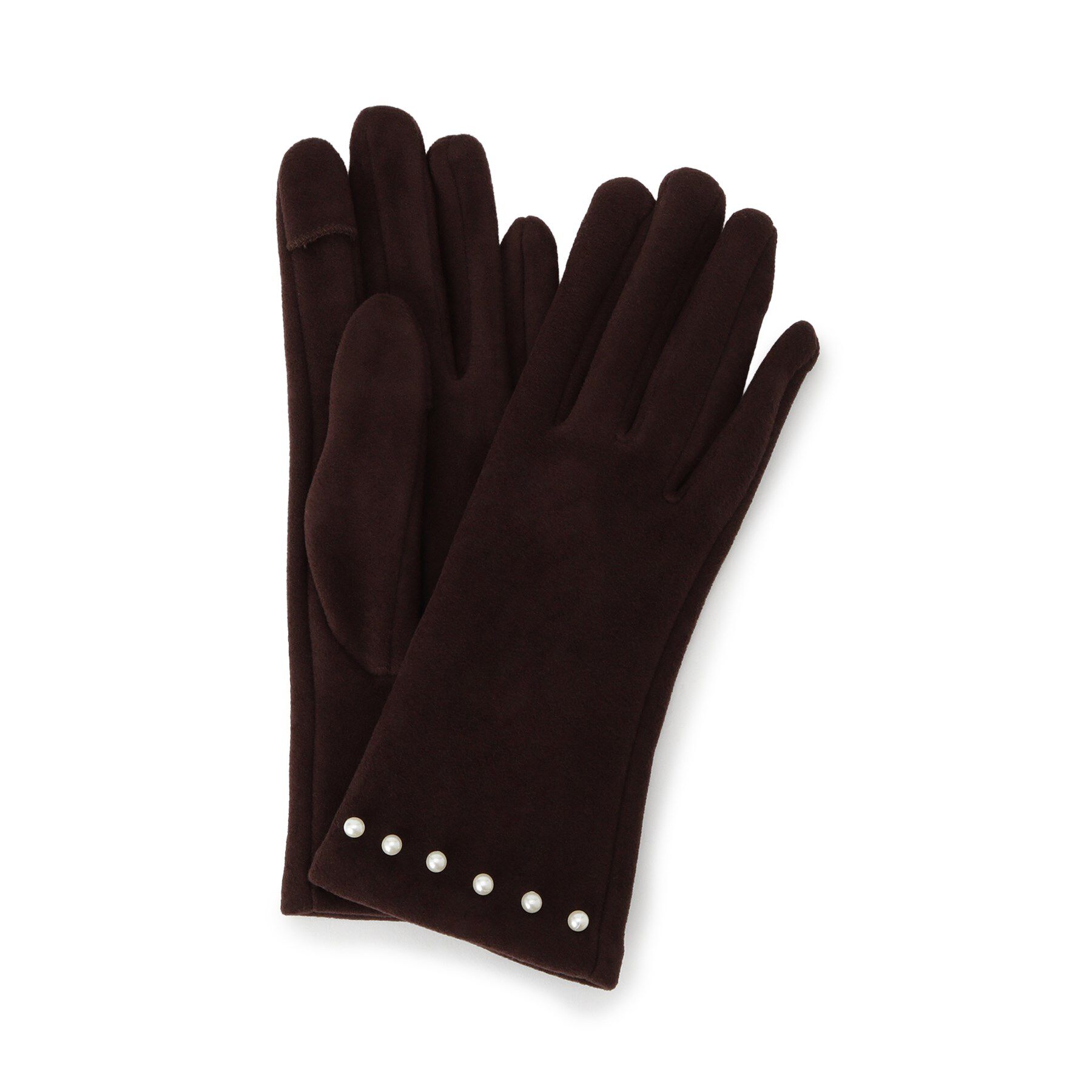 【デザイン】カフス部分にフェイクパールをあしらったジャージーグローブ。肉厚な生地感+裏フリース素材でしっかり防寒◎アクセサリーをつけているかのような.. |