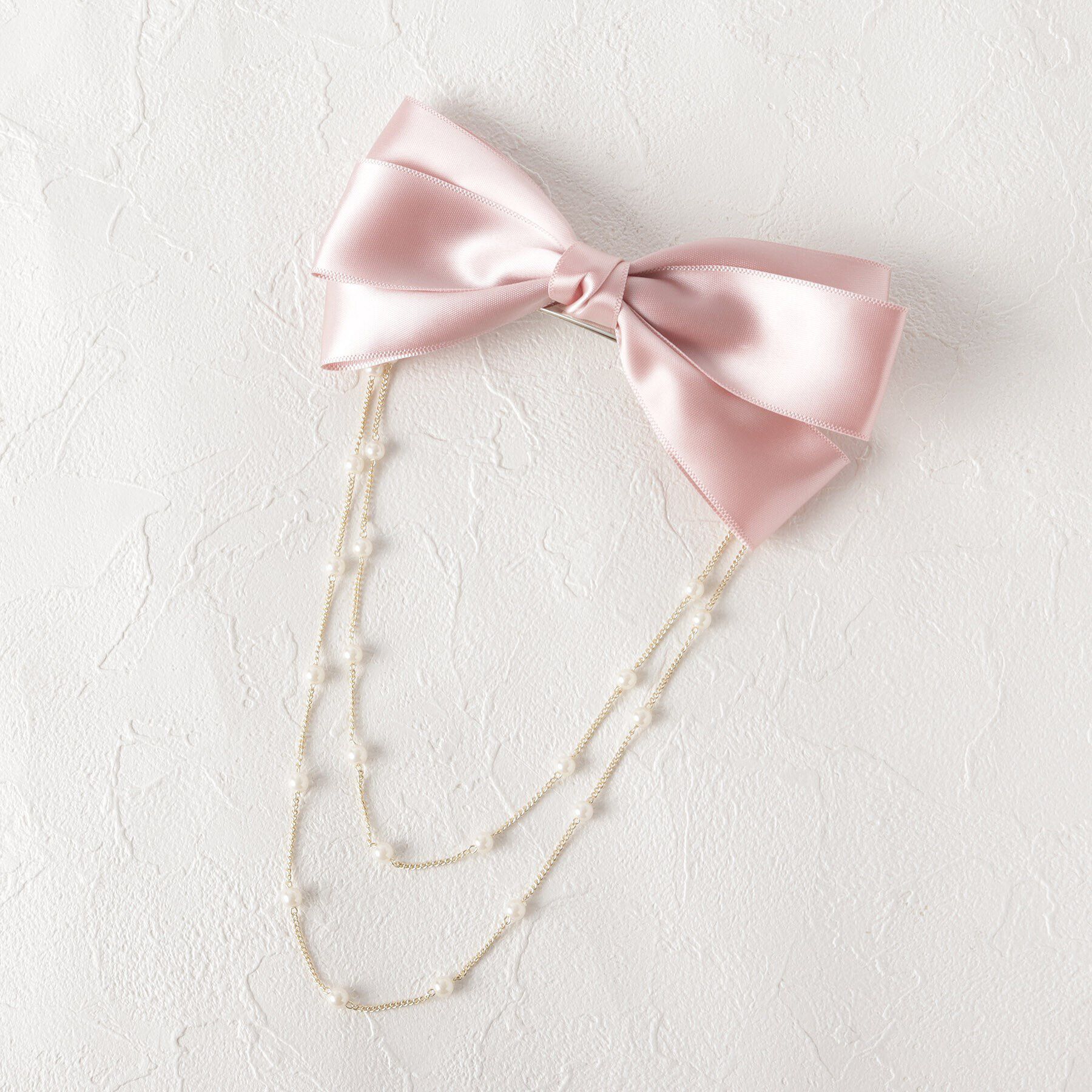 【エスペランサ/ESPERANZA】 2連パール調チェーン付きリボンバレッタ