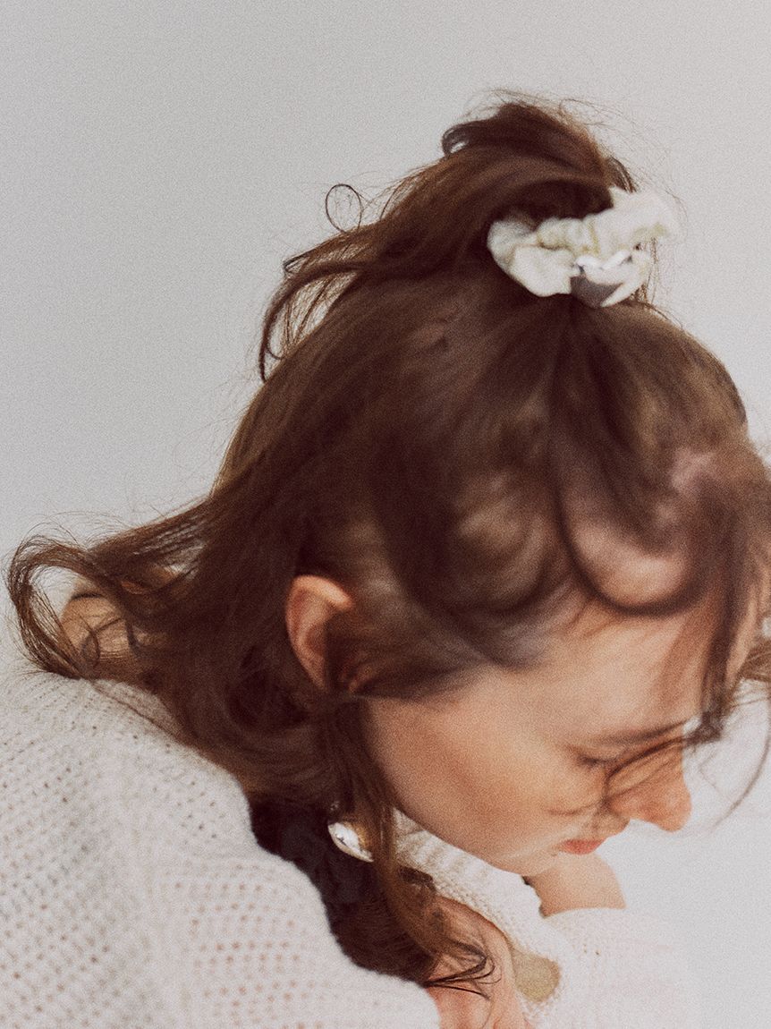 ■Designチェック柄のオーガンジーとチュールの二つの生地を使用したシュシュは、モードかつフェミニンな仕上がりに。同じ生地を使ったお洋服とセットでの着用.. |