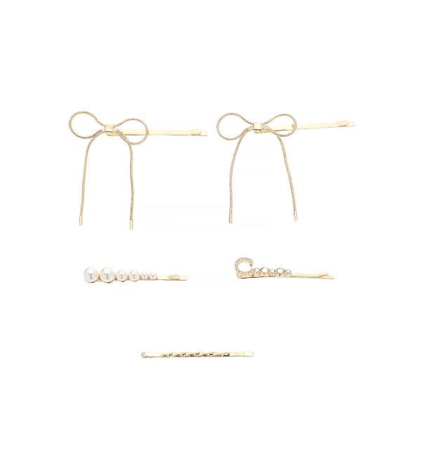 【CALNAMUR】2025 Summer New Arrival 【Design】 5本のヘアピンがSETになったヘアアクセです。足が動くリボンモチーフ、上品に仕上がるパールモチーフ、シン.. |