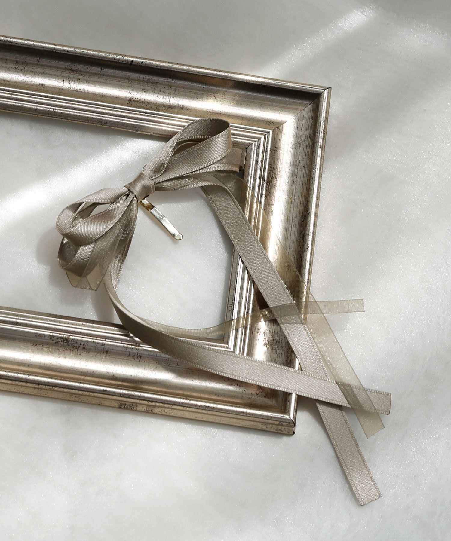 【華奢なリボンがなびく女性らしいヘアアイテム】細いサテンリボンとオーガンジーのリボンを重ねたレイヤードデザインのヘアカフ/ヘアフックです。サイズもほ.. |