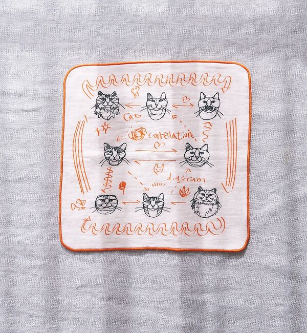 【コレックス/collex】 【+HAyU fabric】 ダブルガーゼ 猫刺繍ハンカチ 綿100%