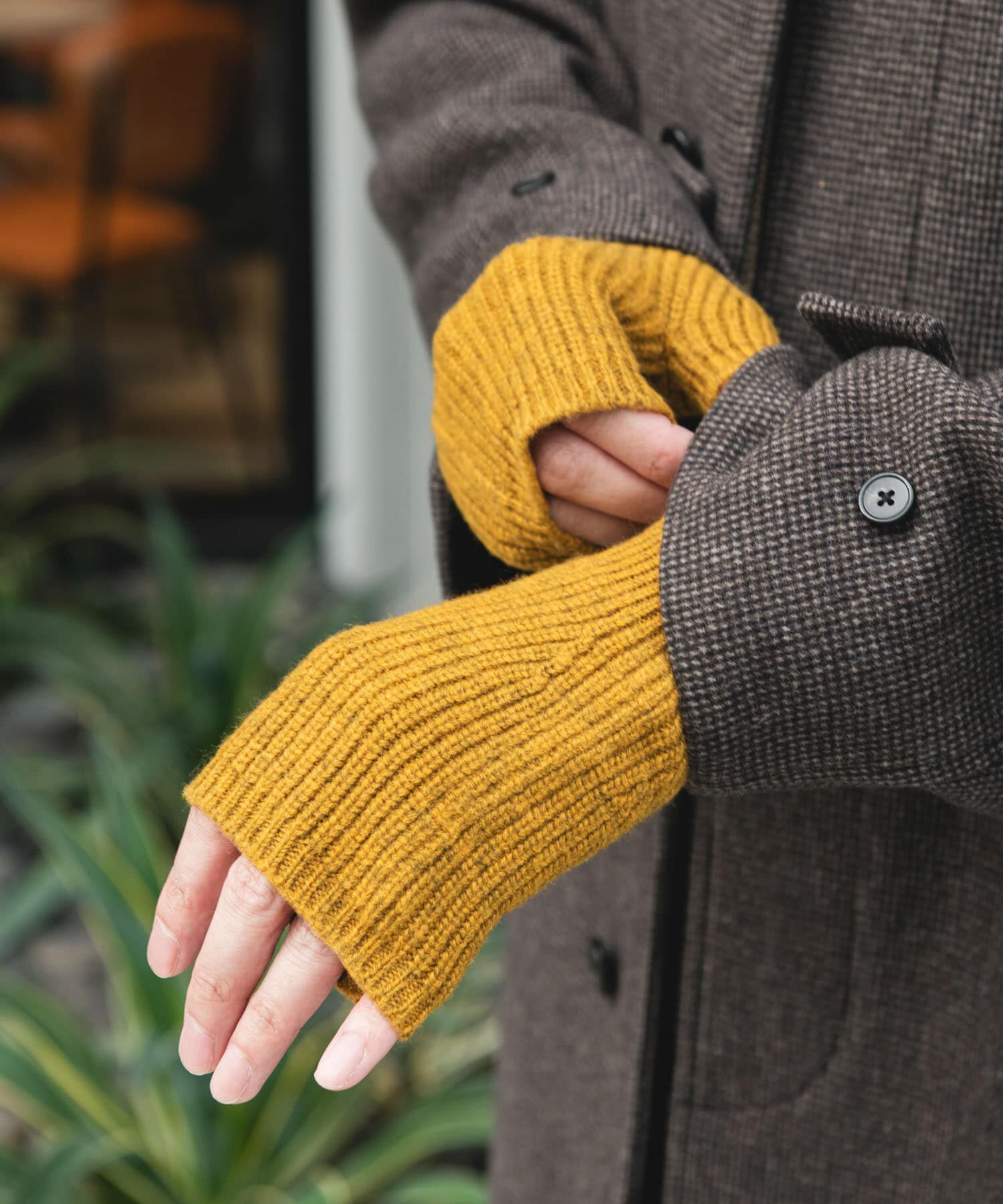 指先が空いたデザインでスマートフォンも扱いやすい、便利な2WAYニットグローブ。コードを繋いで首から下げたり、スタイリングのアクセントとしても楽しめます.. |
