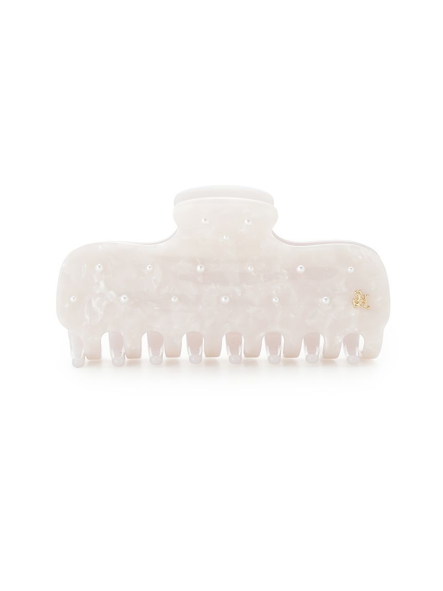 小粒パールを散りばめたガーリーなハート型ヘアバンス【Design/Styling】シェルのような光沢感のあるアセチに、パールのドット柄を贅沢に散りばめたハート型の.. |