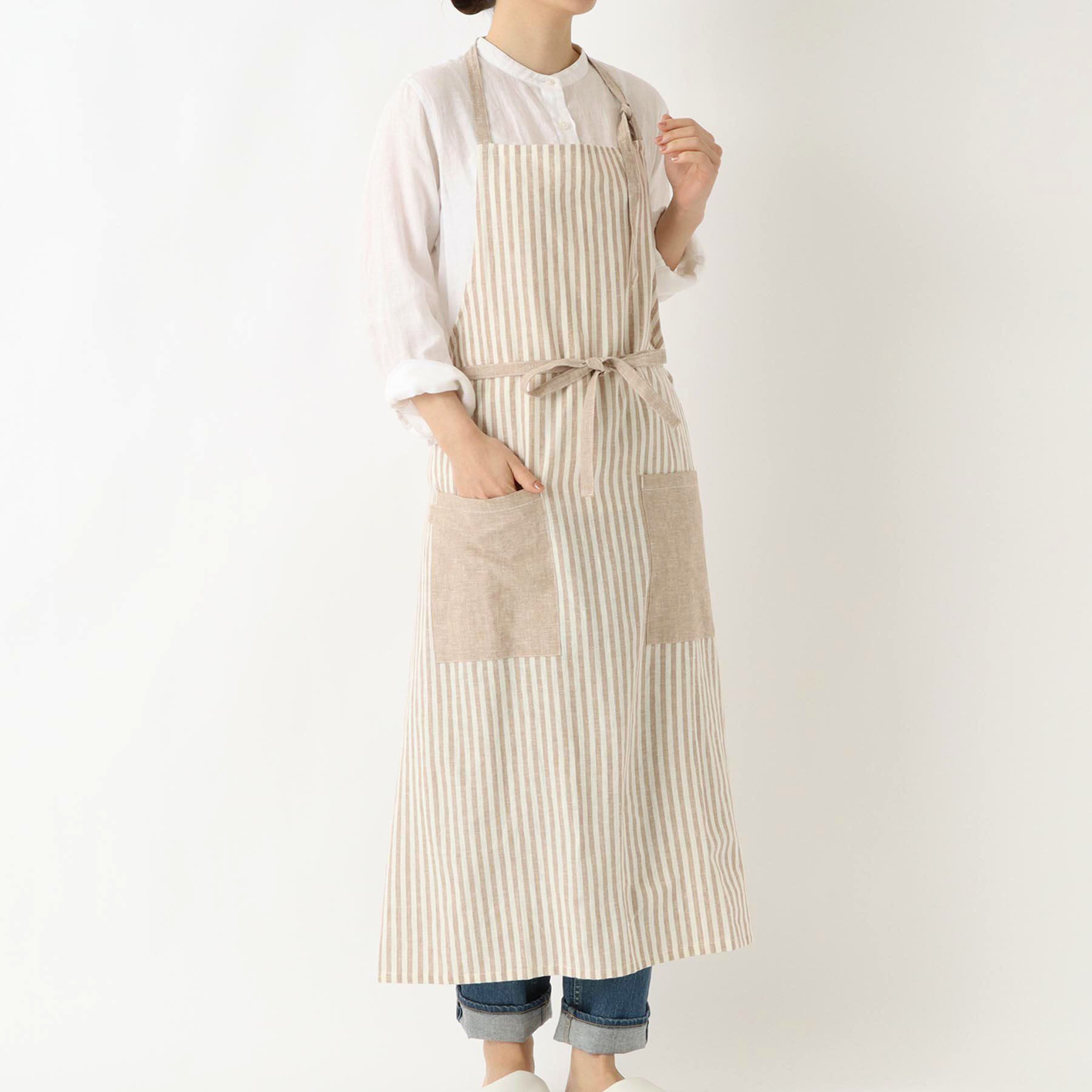 【トゥーワントゥーキッチンストア/212 KITCHEN STORE】 ブロックストライプ リネンコットン フルエプロン NT <212Kオリジナル >