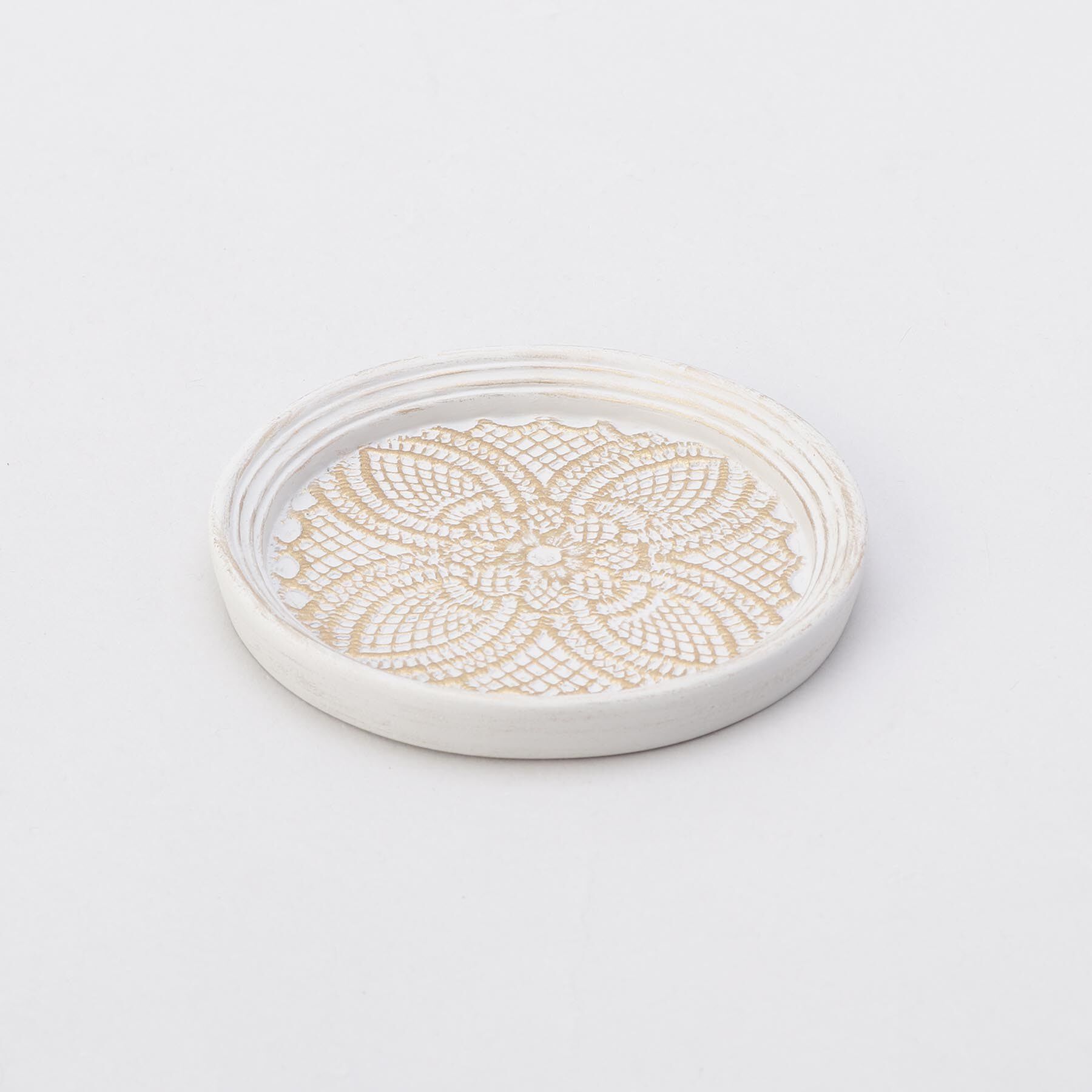レースを貼りつけ、凹凸感が特徴のコースターです。フチが高い設計で、冷たい飲み物などを置いても、水滴がこぼれる心配はありません。Resat(レサト)は、樹脂.. |