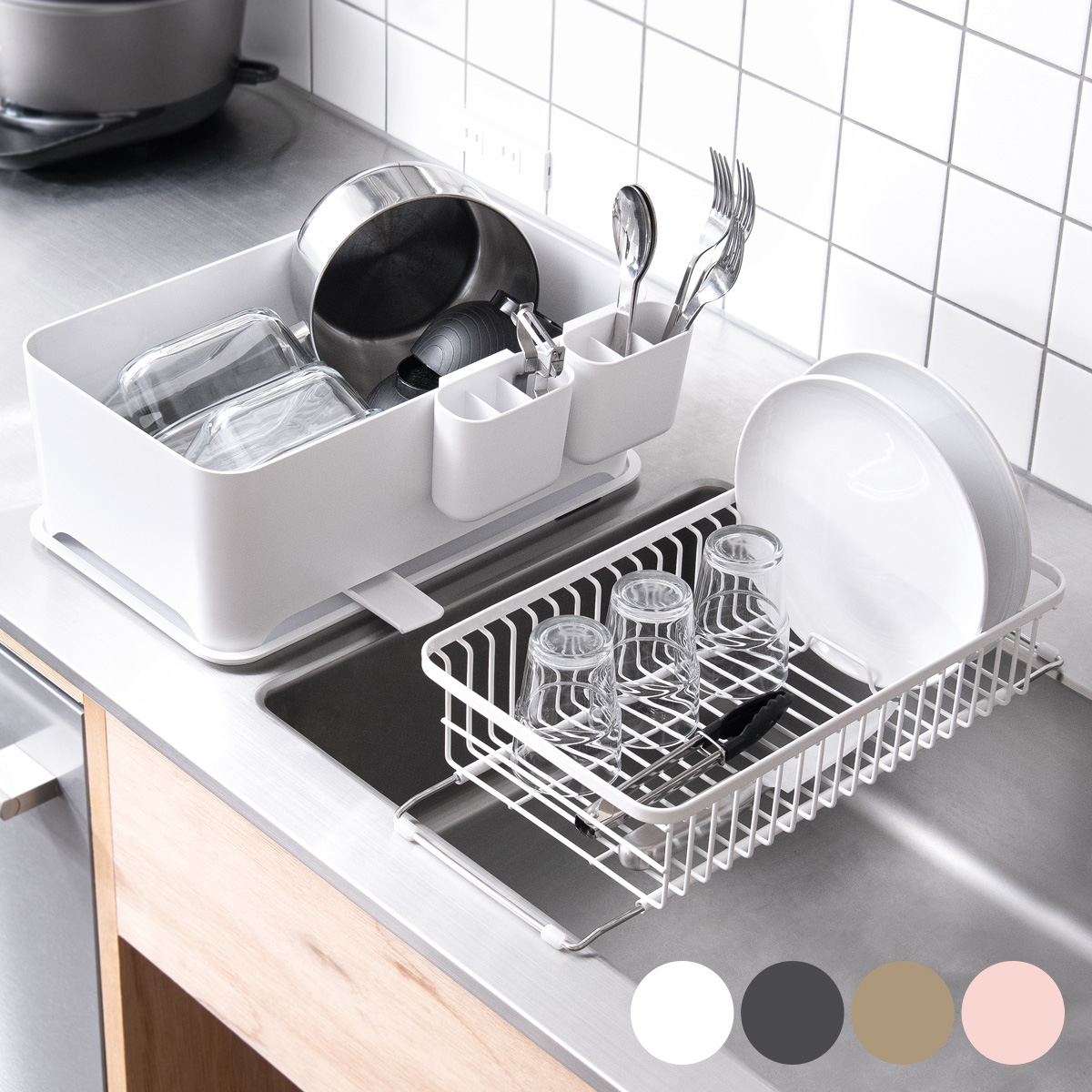 YOHAKU〔余白〕コンパクトにまとまる大容量水切りセット/普段はすっきりコンパクト、広げると大容量の水切りカゴに。食器量やキッチン、洗い方に合わせて、自..