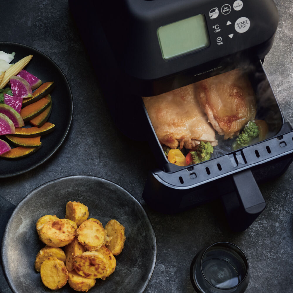 付属のパーツを組み合わせて、様々な調理を楽しめるマルチクッカー「キャレ」。 テーブルに気軽に置けるコンパクトなサイズ感と、角丸の四角いフォルムデザイ.. |
