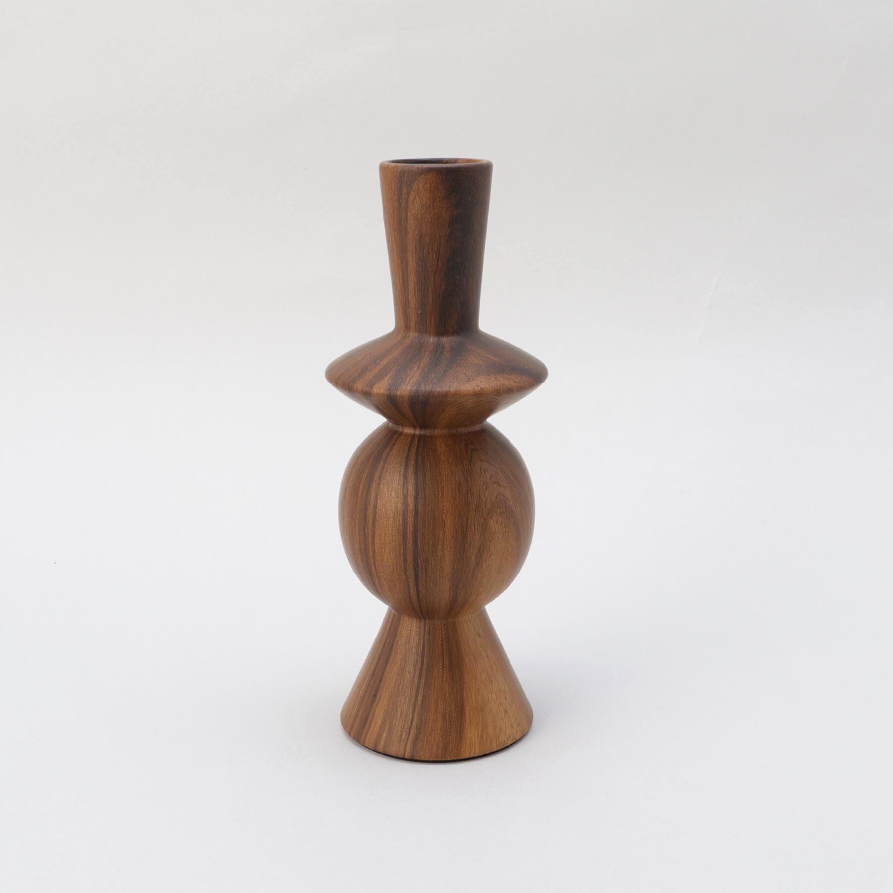 リアルな木目を転写で表現した陶器製のフラワーベース。ユニークな形状と落ち着いた木目の存在感が空間を上品に引き立てます。口が細いため花が一輪でも生けや.. |