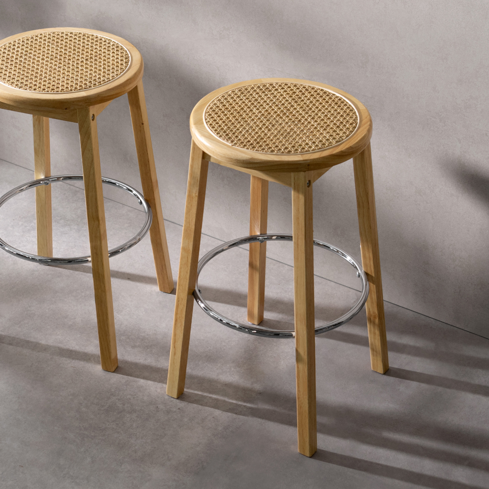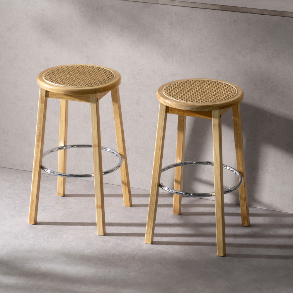 ラタンバーチェア Elmie〔エルミー〕2脚セット/ラタン×天然木×メッキの素材感が生み出す、あたたかく軽やかな佇まいのバーチェア。 しなやかな座り心地と使い.. |