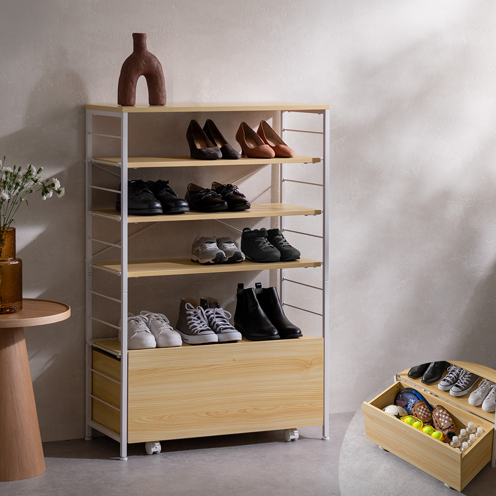 引き出し収納付きシューズラック Foria〔フォリア〕/玄関周りの雑多な小物を隠して収納できる、引き出し付きシューズラック“Foria(フォリア)”。最大12足まで収.. |