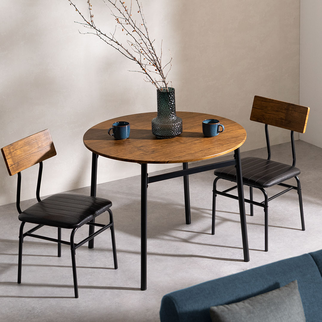 ヴィンテージ風ダイニング3点セット 円形タイプ