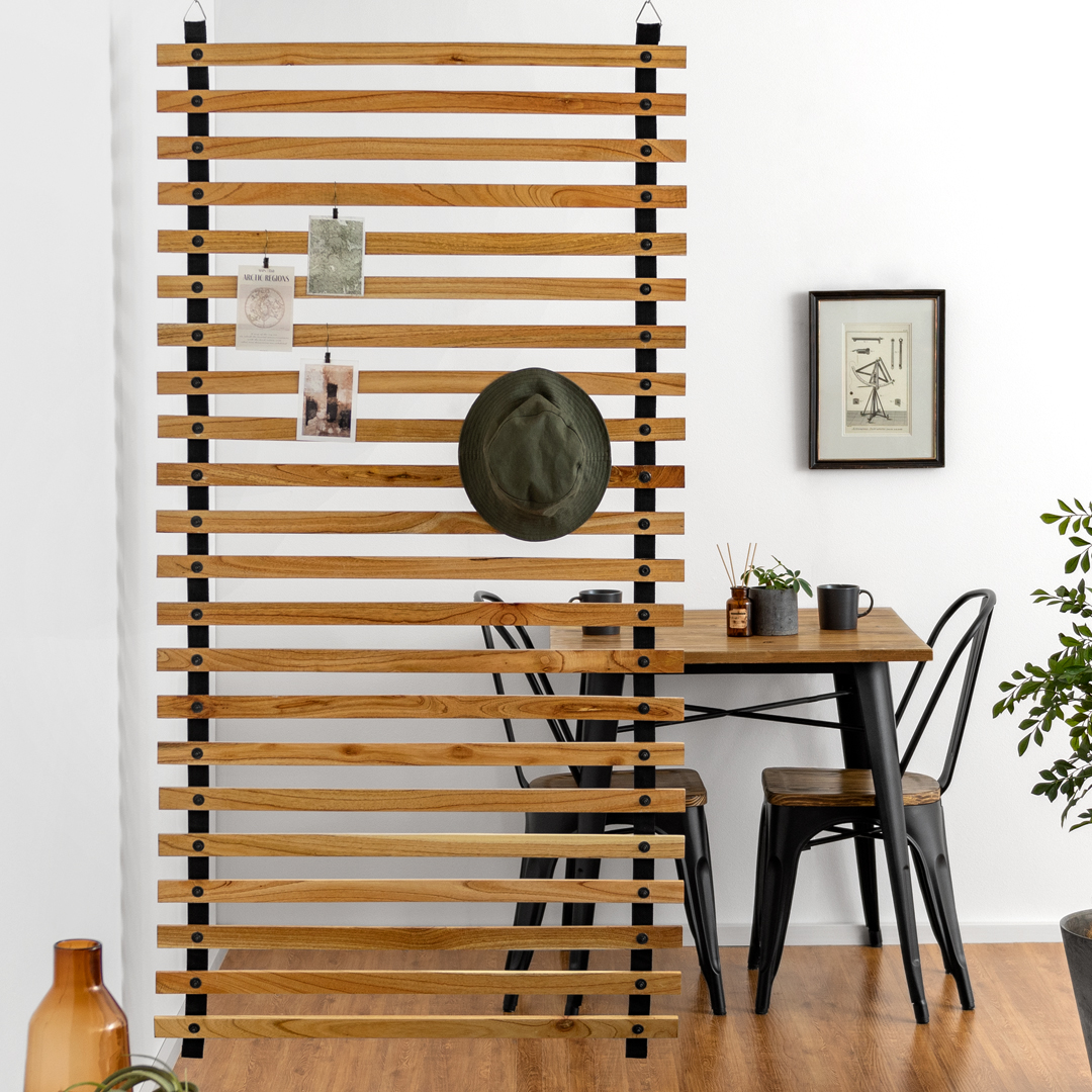吊り下げ式ロールパーテーション ロングタイプ/吊り下げて、省スペースに設置できるパーテーション。天然木ミンディを贅沢に使用した、繊細で艶やかに流れるよ.. |