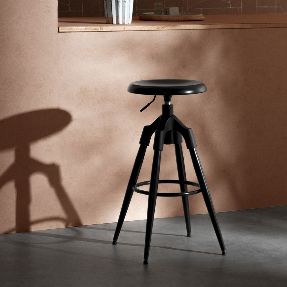バーチェア Ford〔フォード〕ハイタイプ/ブラックスチールが映える、昇降式バーチェア『Ford(フォード)』。インダストリアルな空気感を纏いながら、細身のスチ.. |