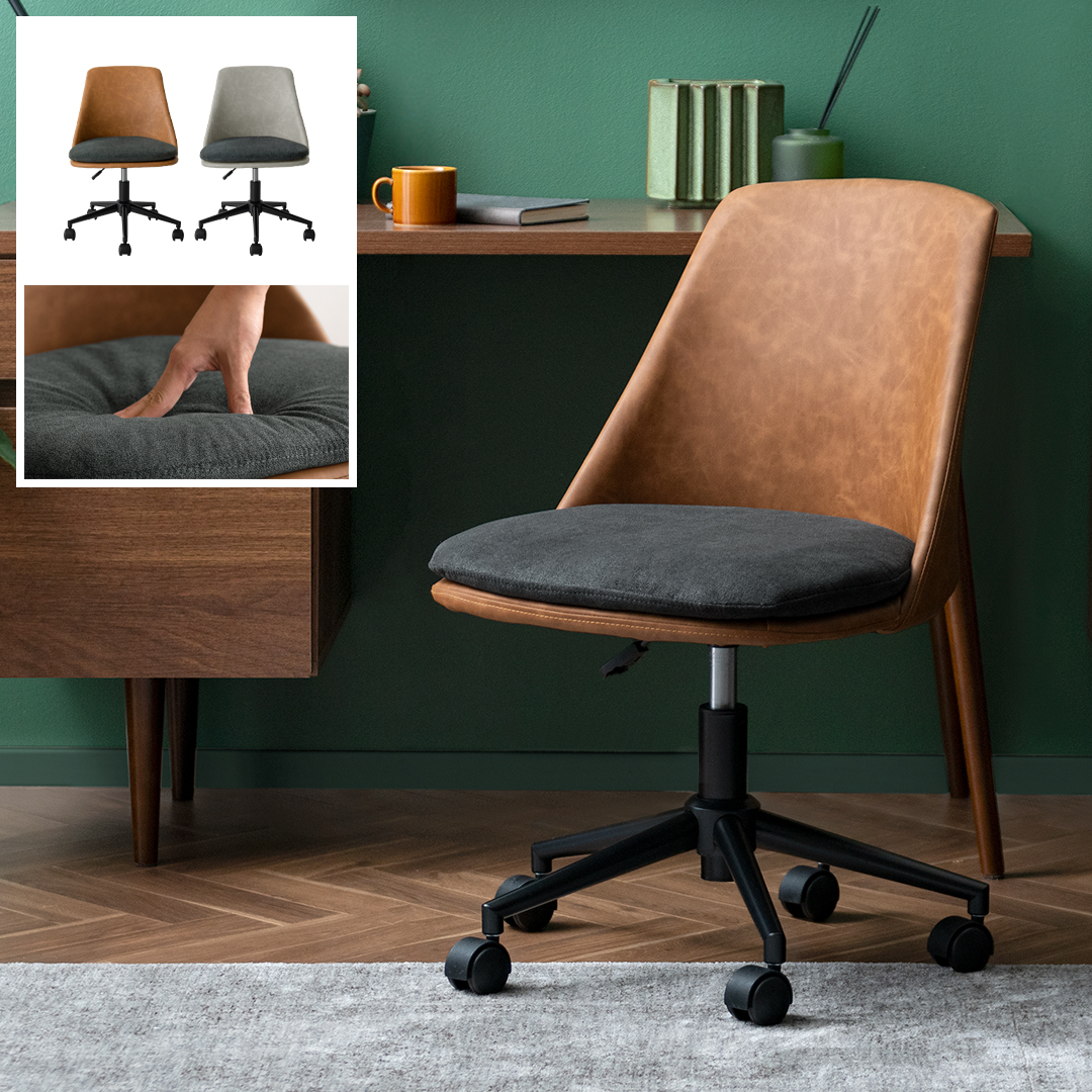 デスクチェア Roel〔ロエル〕 /PUレザーとファブリックの、2つの生地を座面に使用したデスクチェア”Roel(ロエル)”ふんわりとしたクッション性が、長時間座って.. |