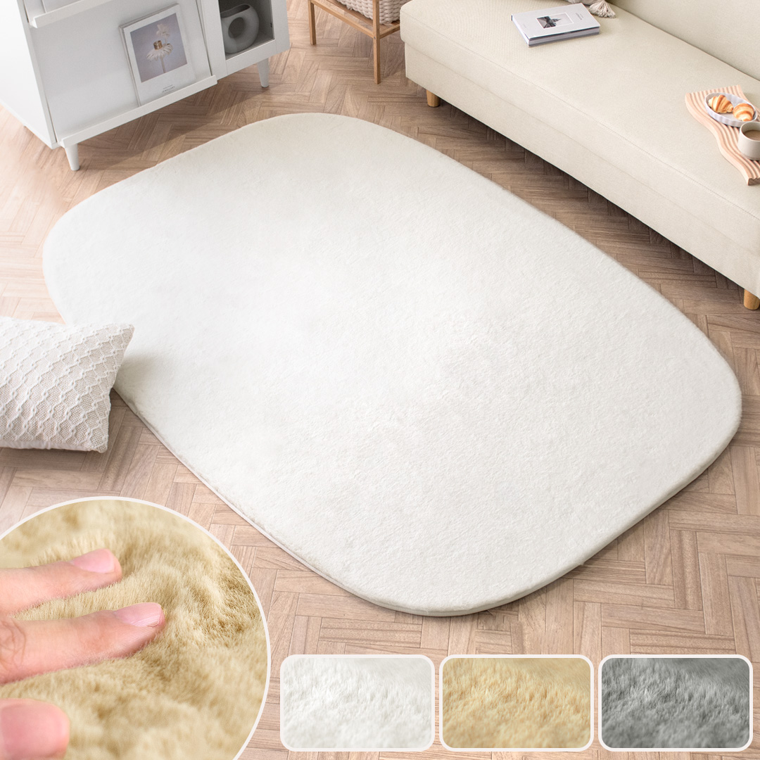 ラビットファータッチラグ RaFFY〔ラフィー〕 130×190cm/角のない柔らかな曲線のシルエットに、ふわふわのラビットファー。カタチと素材、2つの視点から“柔ら.. |