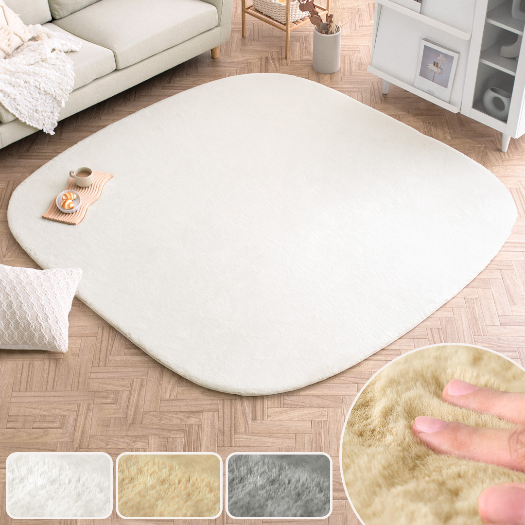 ラビットファータッチラグRaFFY〔ラフィー〕 190×190cm/角のない柔らかな曲線のシルエットに、ふわふわのラビットファー。カタチと素材、2つの視点から“柔らか.. |