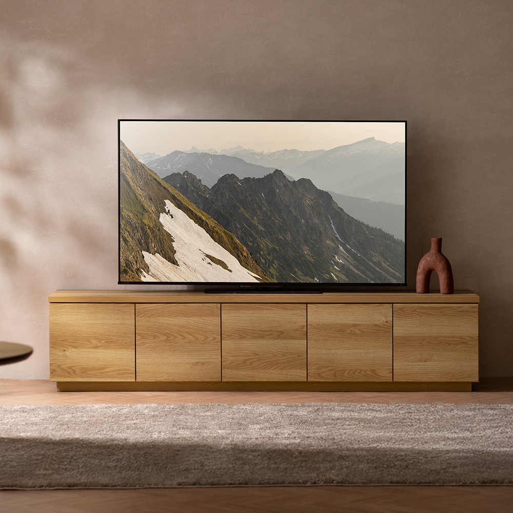 テレビボード YUNO〔ユノ〕/まるで無垢の木箱のような、凛とした重厚感。シンプルなフォルムに繊細な木目が引き立つテレビボード“YUNO(ユノ)”。扉で生活感を隠.. |