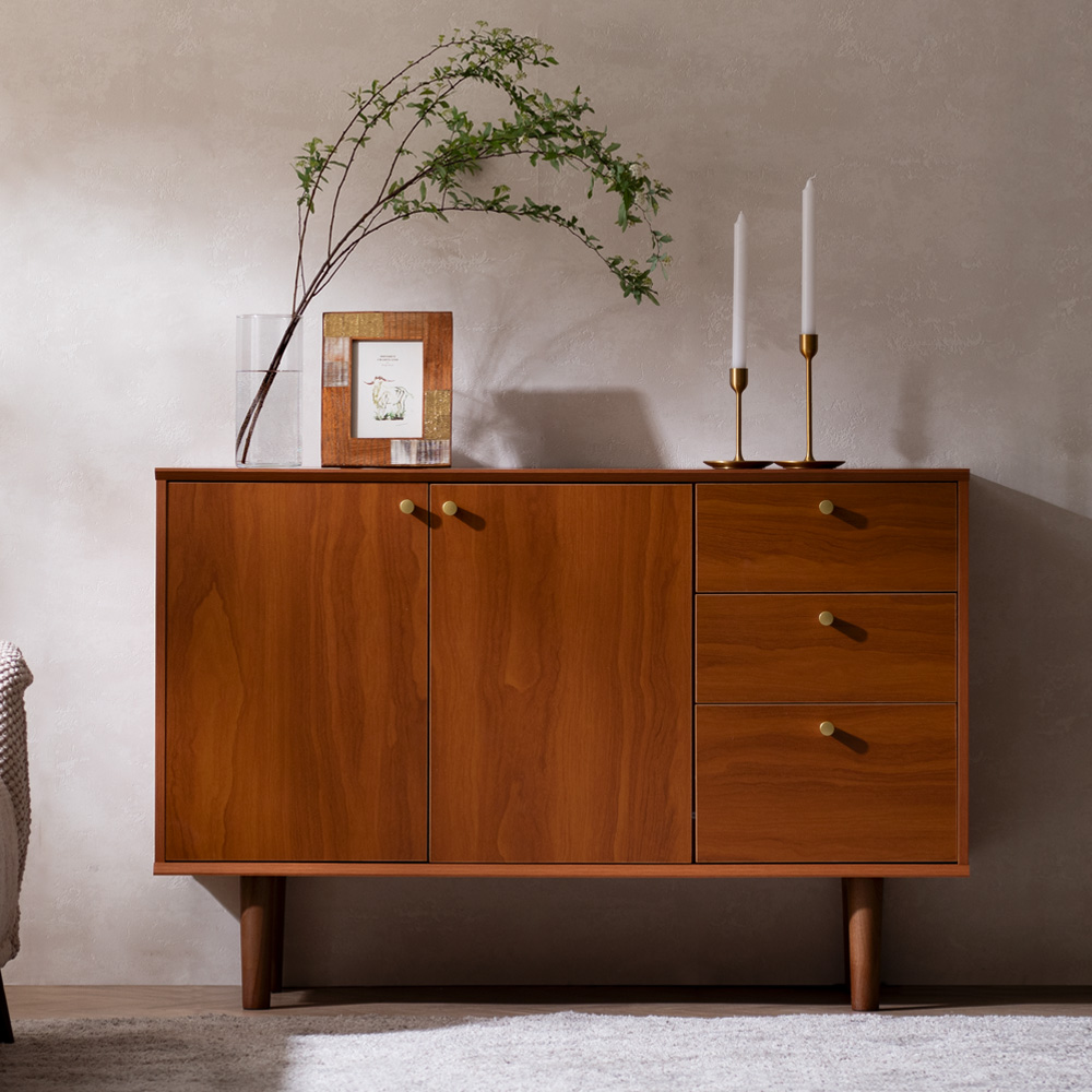 ヴィンテージ風キャビネット MARONE〔マローネ〕/マホガニー調の赤茶の木色と高めの脚部が、軽やかで上質な空間を演出するキャビネット。本や家電をしまえる収.. |