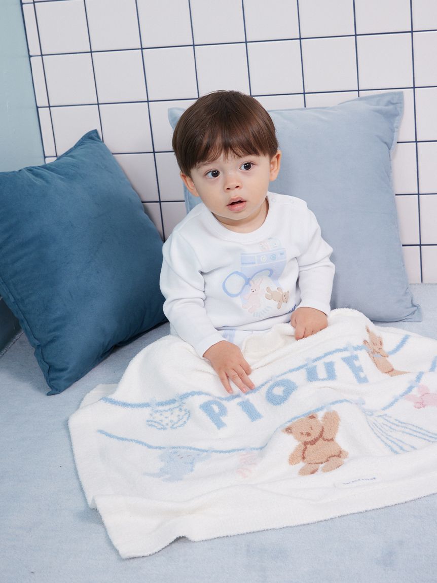 【ウォッシングベア柄のKIDS向けエアリーモコブランケット】【Fabric】AIRY MOCO(エアリーモコ)…空気を身にまとっているような軽い着心地と、ライトな肌触り.. |