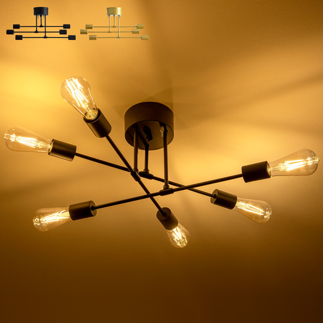 シーリングライト Terry〔テリー〕/ランプの魅力を引き立てる、シェードのないデザインが印象的な6灯シーリングライト“Terry(テリー)”交差するアームとスチー.. |