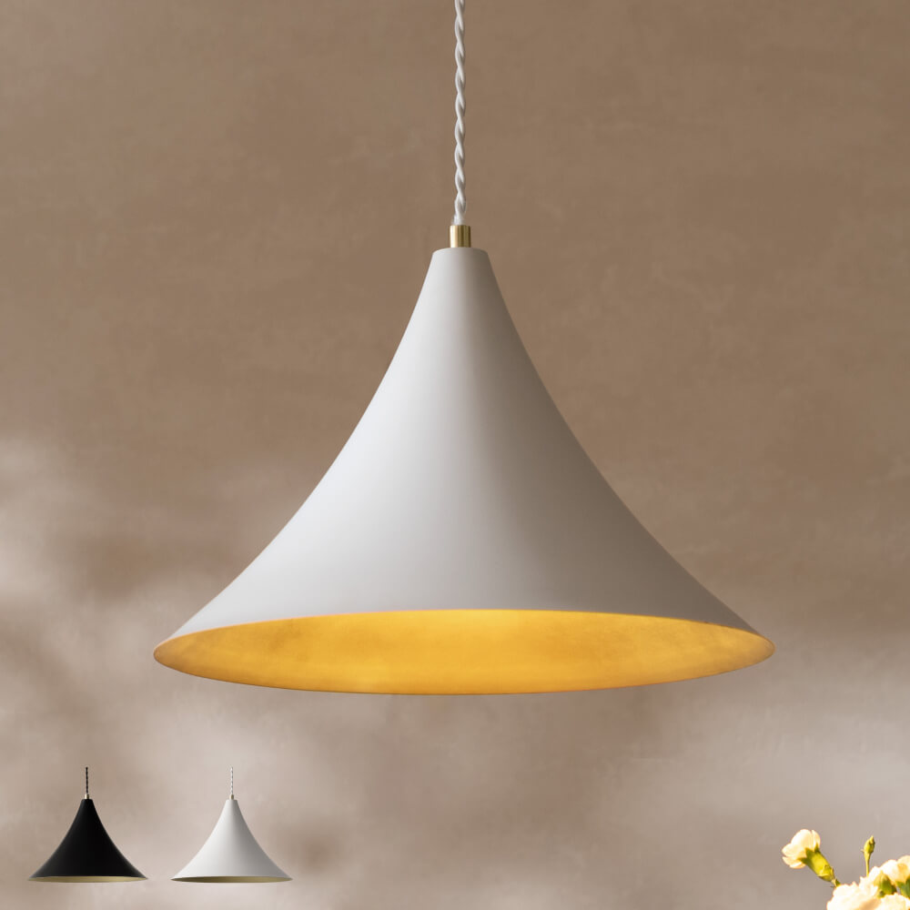 ペンダントライト Meld〔メルド〕/なめらかな曲線を描くシェードが、空間にやわらかな陰影をつくる上品なペンダントライト。内側のゴールドが光をやさしく反射.. |